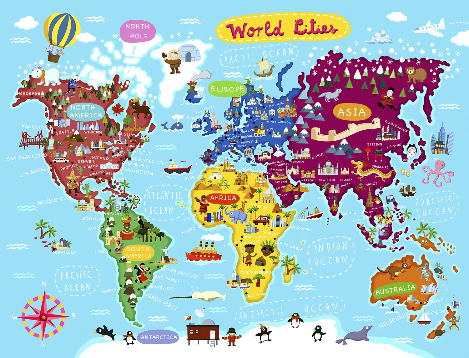 World Cities Map Animals People Buildings Trees Vehicles Palms Whales Ships Igloo Penguins Octopus Dragoon ALST*