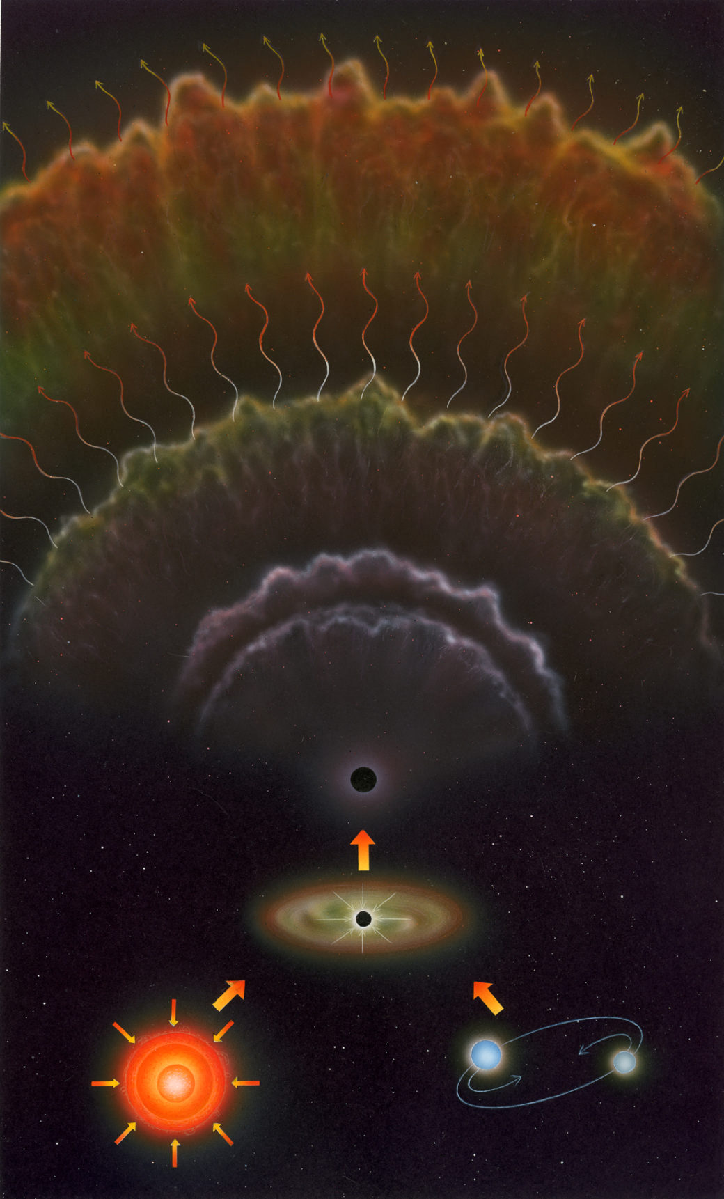He realized astronomical and scientific illustrations with Fabbri-RCS (“Sea planet”, “Tecno”, “Astronomy”, “Journey into the Universe”, “Extreme nature”), UTET (“First”, “Atlas of Universe”), the journals “Astronomy”, “Science and Life”, “Airone”, “Newton”, “Quark”, “Geo”, “Focus” as well as scientific institutions such as the National Institute of Nuclear Physics in Frascati and Ferrara and the Fermi Centre in Rome.