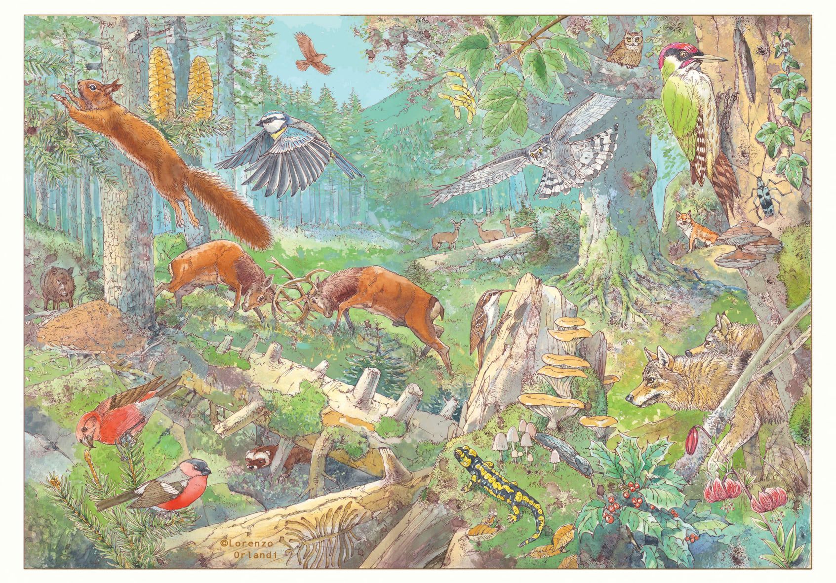 Lorenzo Orlandi studied illustration at the School of Applied Arts of Castello Sforzesco in Milan, Italy. Lorenzo has been an illustration teacher at Scuola del fumetto in Milano, Italy, for 24 years. He worked as an illustrator with the established Italian publisher, Mondadori, from 1983 to 1994 and with the established German publisher, Gruner + Jahr, from 2005 to 2013. Lorenzo works for advertising agencies, magazines, and publishers worldwide. He specializes in illustrating books for young people. Lorenzo paints illustrations with black and white lines, watercolors, gouache, acrylics, airbrush, oil, and techniques mixed with Photoshop and Corel Painter. Lorenzo loves to illustrate subjects from natural history, prehistory, wildlife, the environment, costumes, and corporate advertising.
